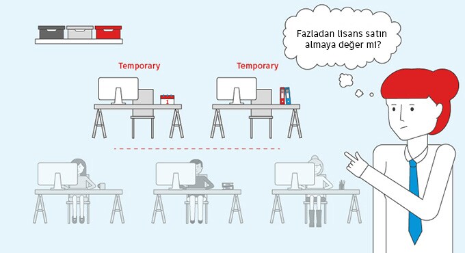 Sarah geçici yüklenicilerden oluşan bir ekibi yönetiyor. Geçici personel için fazladan lisans satın almaya değer mi?