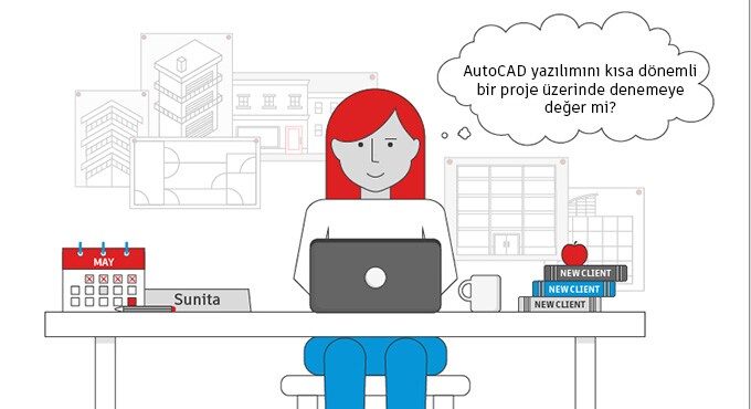Sunita yeni bir müşterinin işi için AutoCAD'e abone olmak istiyor. Ancak AutoCAD yazılımını kısa dönemli bir proje üzerinde denemeye değer mi?